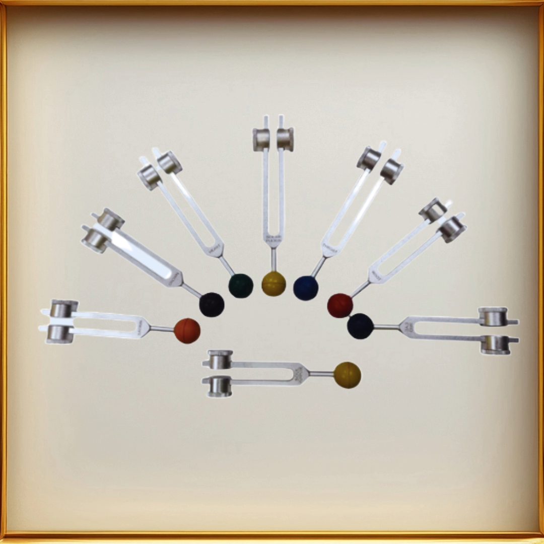 Elevate your energy and restore balance with our 9 Chakra Tuning Forks Set, carefully tuned to the frequencies that resonate with each of the body's primary energy centers. Designed for healers, meditators, and anyone on a path of holistic wellness, these tuning forks create vibrational waves that clear blockages, deepen meditation, and support physical, emotional, and spiritual well-being.
