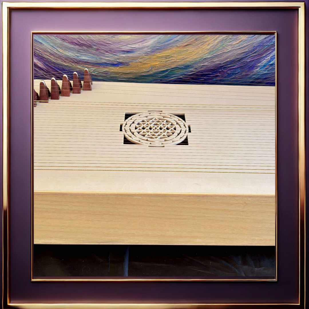 A warm, grounding monochord with a carved Tree of Life motif. Its tone feels earthy and slow which makes it perfect for restorative sound baths and root-focused sessions.