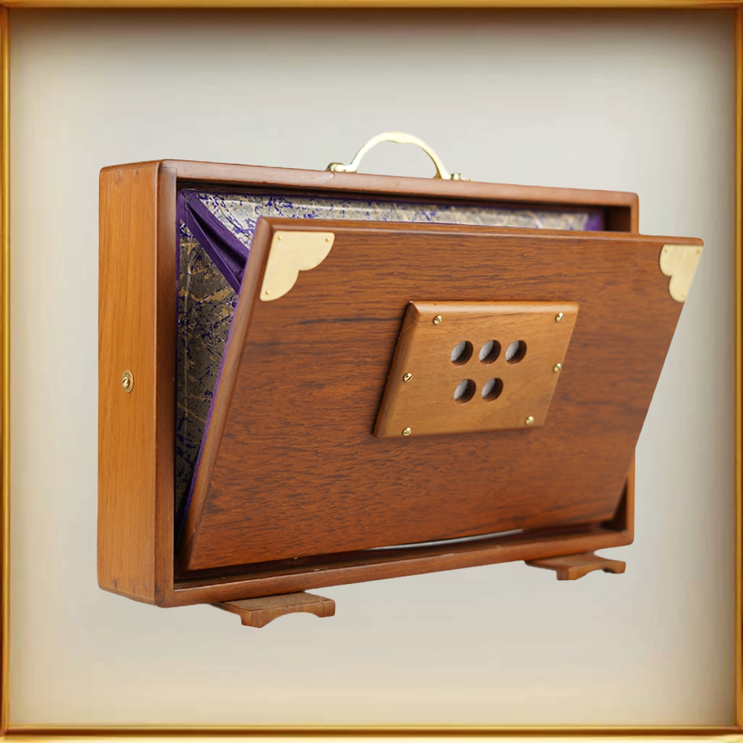 Each gentle breath of air through its reeds releases a continuous drone that grounds the mind and expands awareness. Whether you are a vocalist, sound healer, or meditation guide, the Shruti Box creates a pure harmonic field that supports mantras, crystal bowls, flutes, and voice with effortless grace.